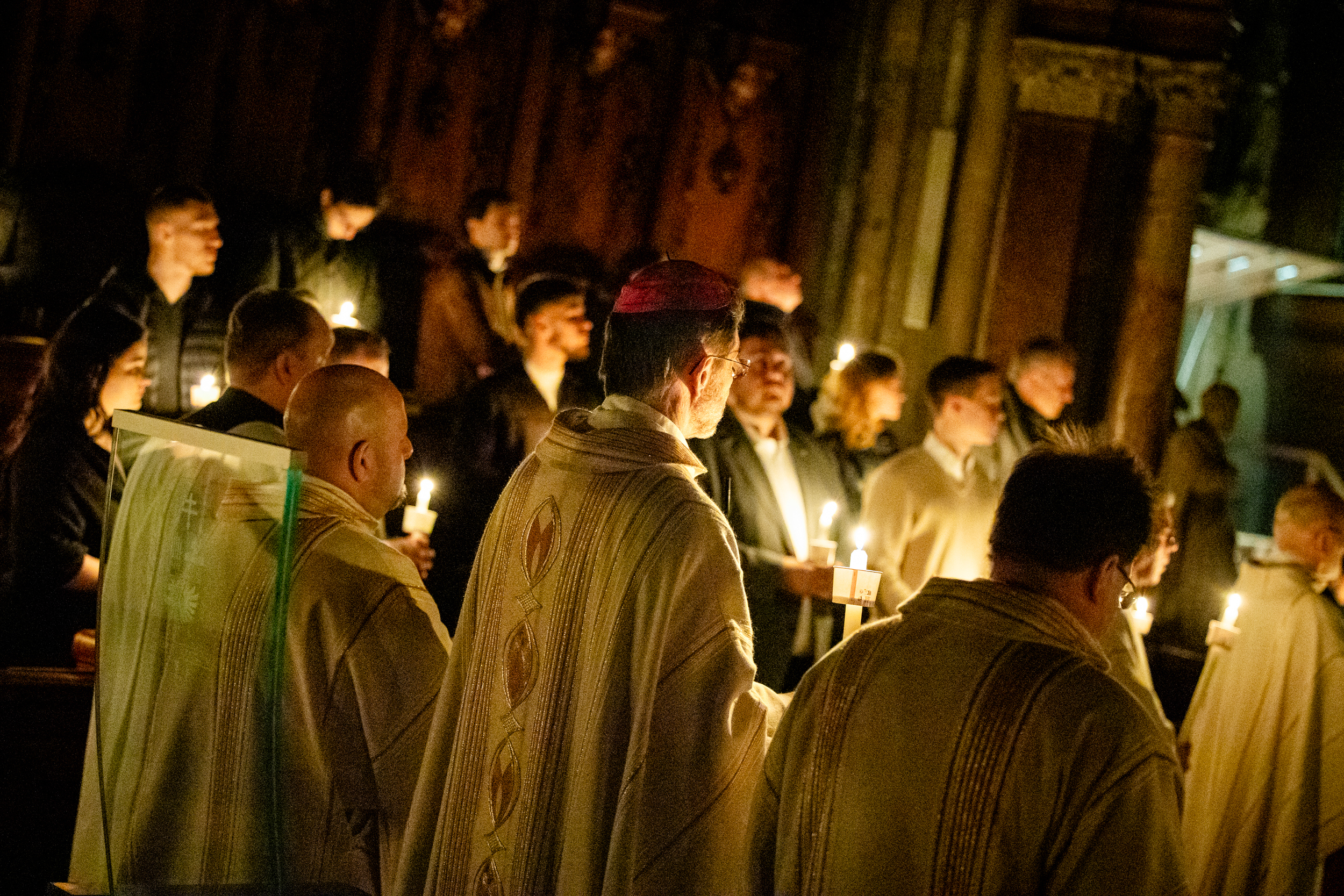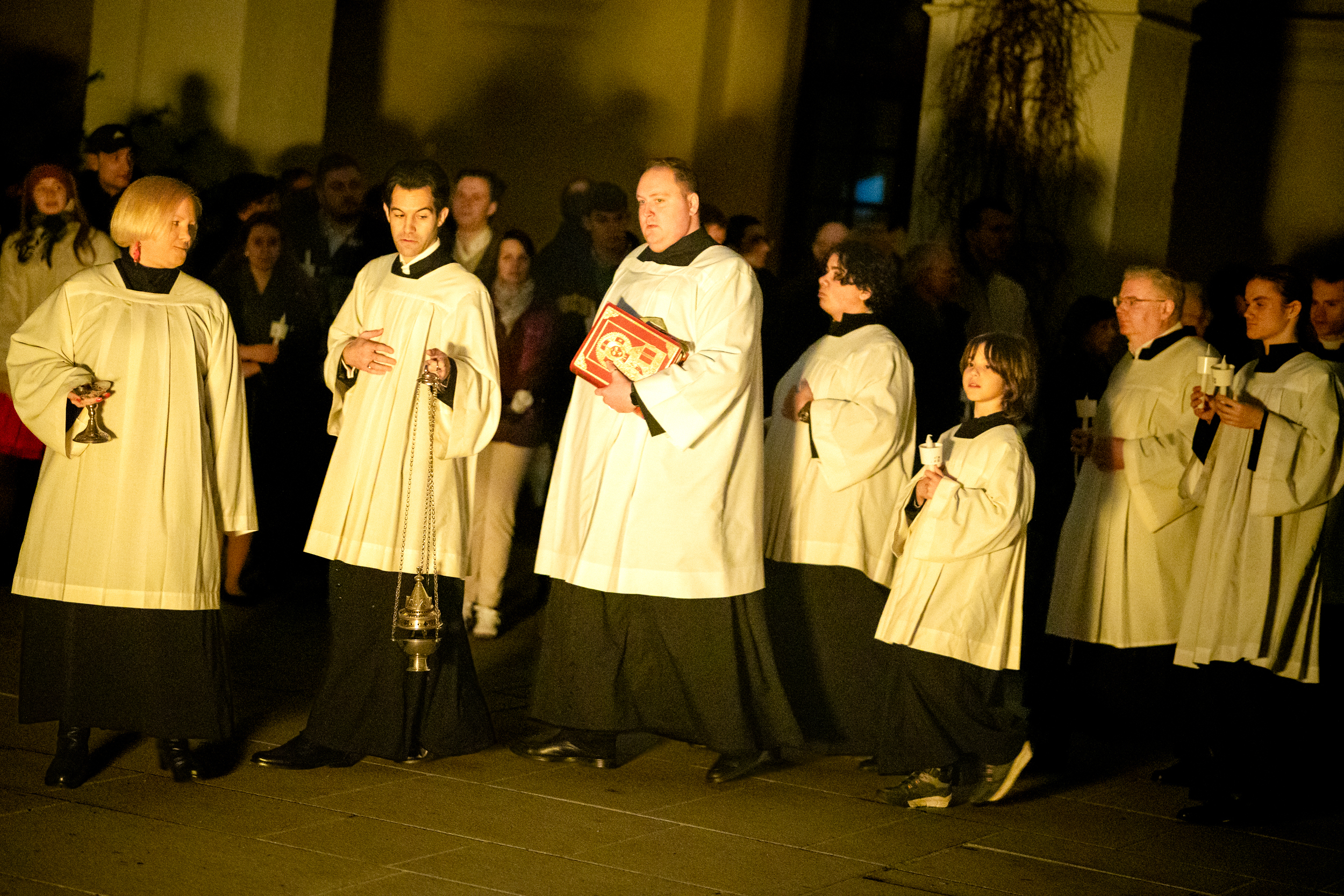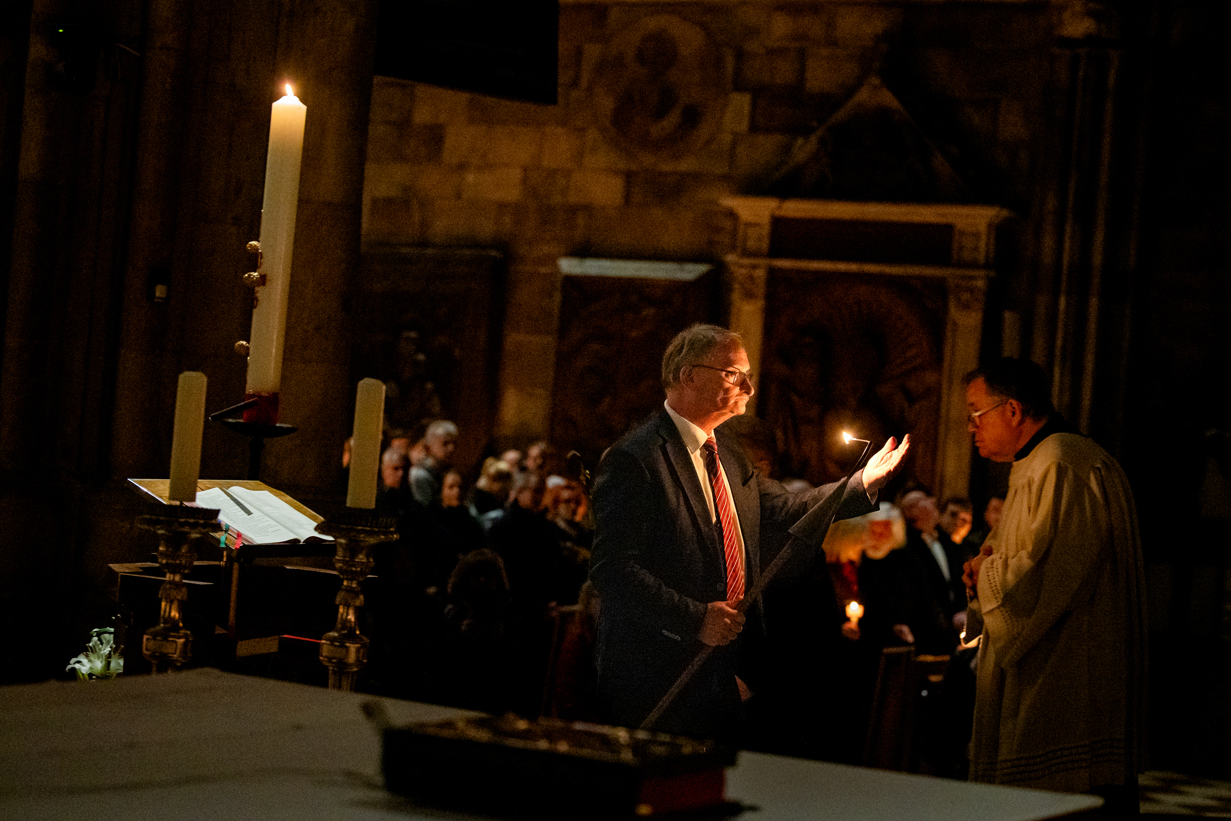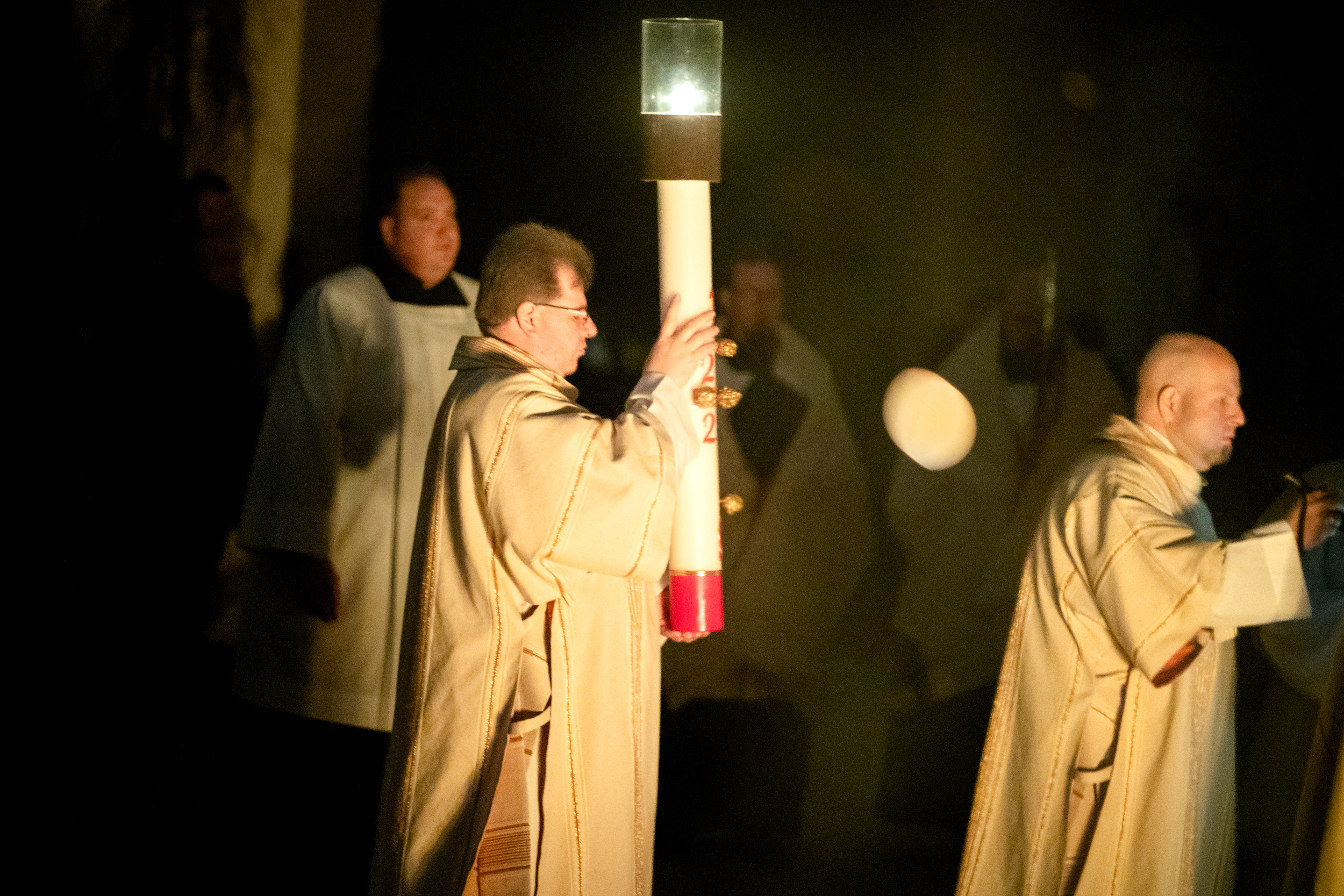 Die Osternacht ist die Feier des Lebens. Ihre Liturgie besteht aus vier Teilen – der Lichtfeier, dem Wortgottesdienst, der Tauffeier und der Eucharistiefeier. Die Lichtfeier beginnt außerhalb des Doms im Hof des Erzbischöflichen Palais. Hier wird die Osterkerze am Osterfeuer entzündet und zum Dom getragen – damit beginnt die Feier der Osternacht. Wir waren mit der Kamera dabei – unter der Leitung unseres Erzbischofs Josef Grünwidl.