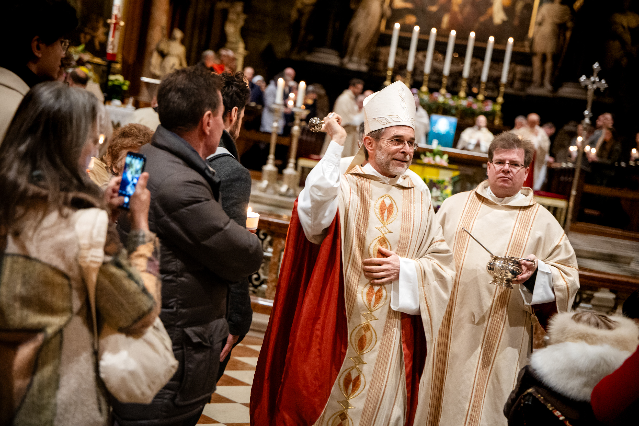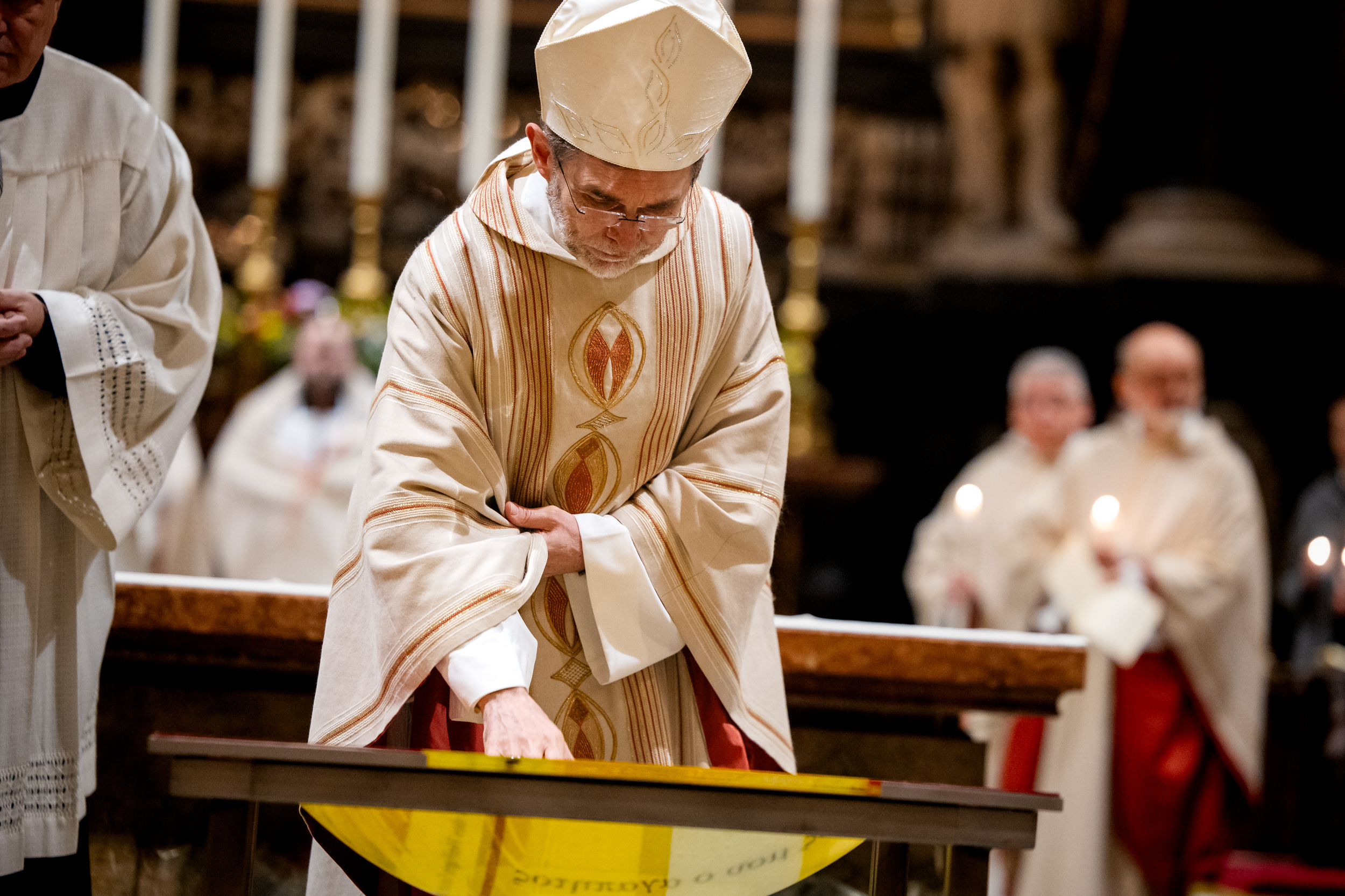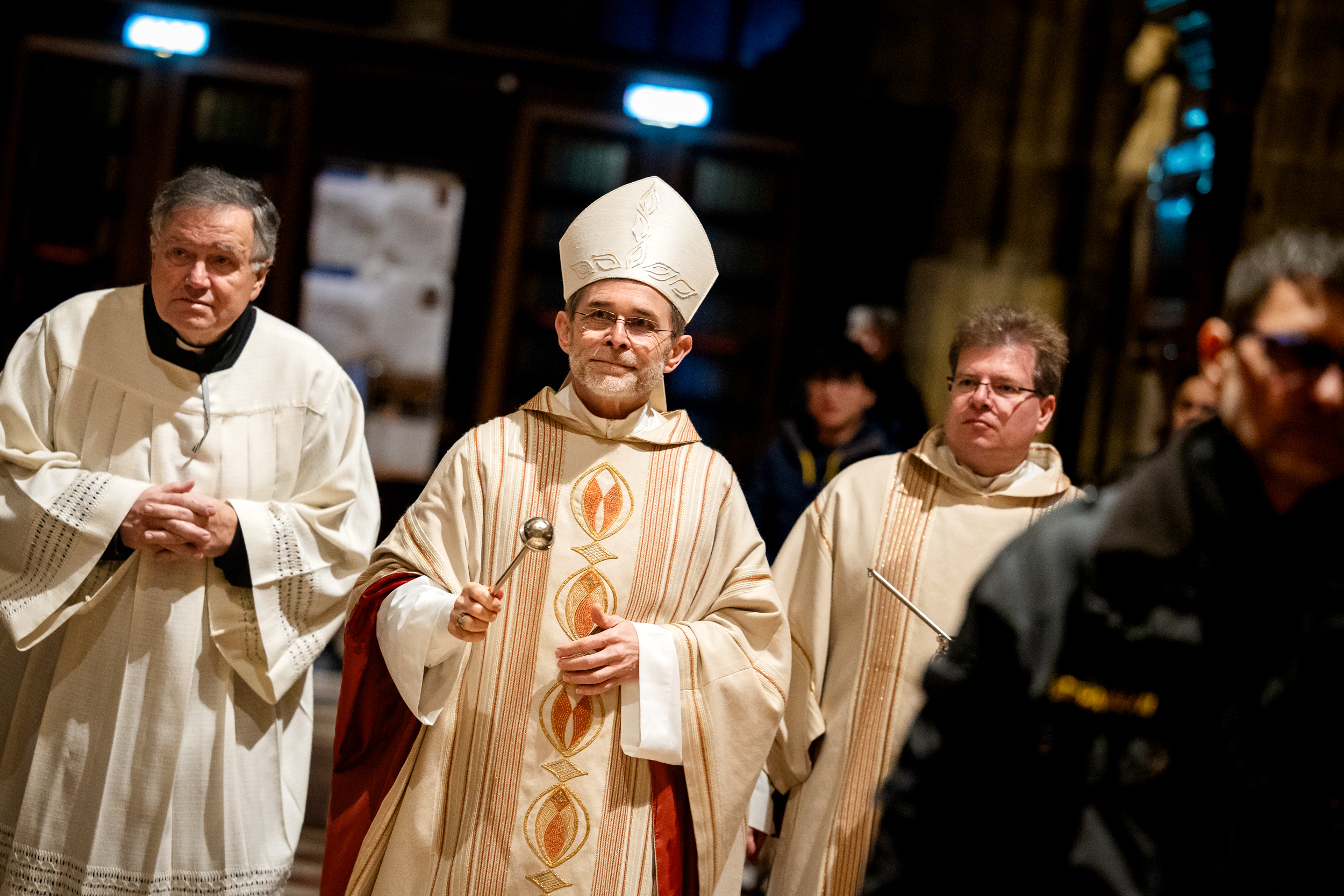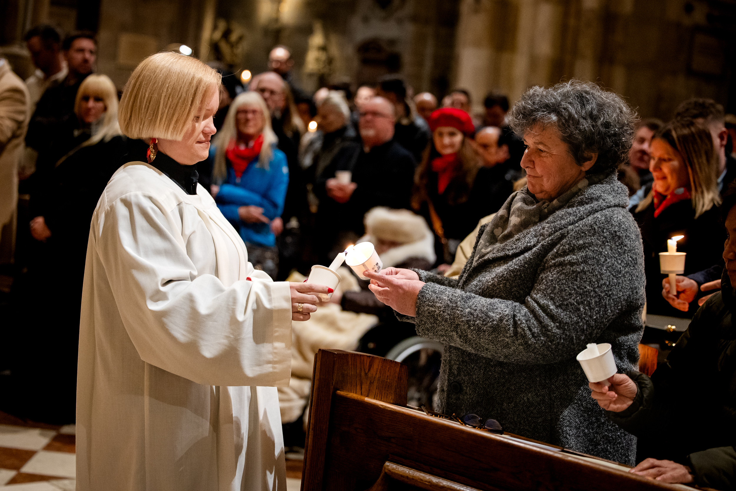 Die Osternacht ist die Feier des Lebens. Ihre Liturgie besteht aus vier Teilen – der Lichtfeier, dem Wortgottesdienst, der Tauffeier und der Eucharistiefeier. Die Lichtfeier beginnt außerhalb des Doms im Hof des Erzbischöflichen Palais. Hier wird die Osterkerze am Osterfeuer entzündet und zum Dom getragen – damit beginnt die Feier der Osternacht. Wir waren mit der Kamera dabei – unter der Leitung unseres Erzbischofs Josef Grünwidl.