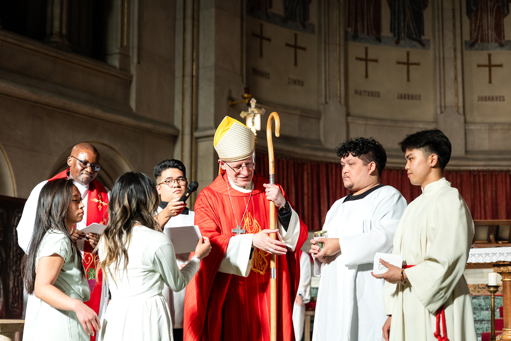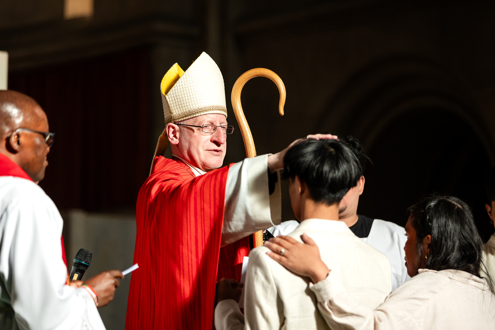 Weihbischof Franz Scharl spendete 61 Mitgliedern der anderssprachigen Gemeinden in der Wiener Canisiuskirche das Sakrament der Firmung.